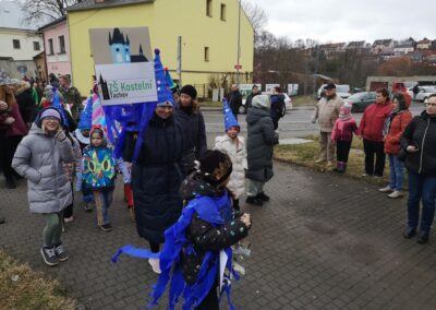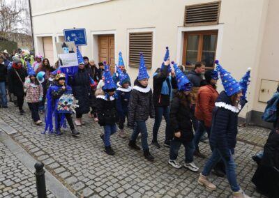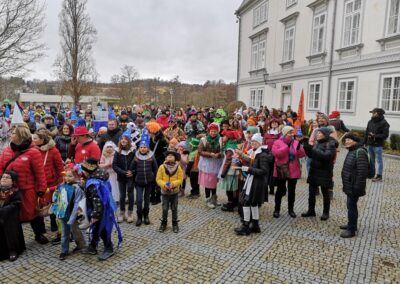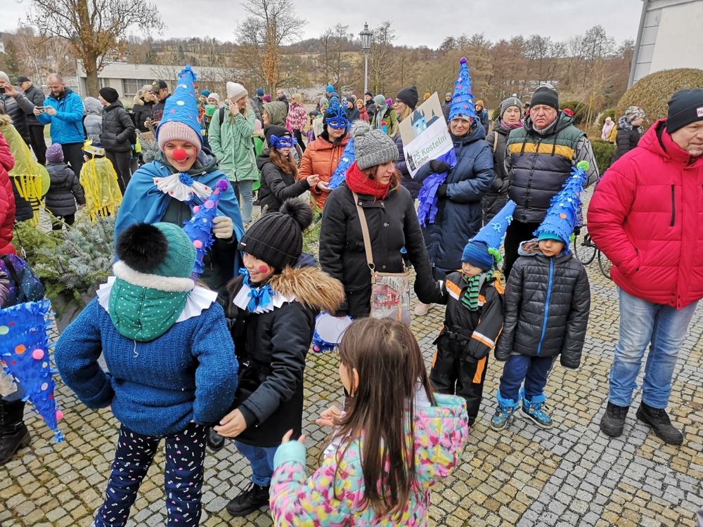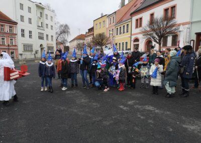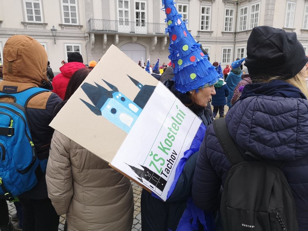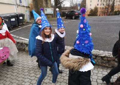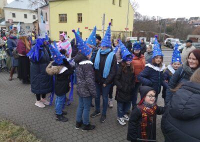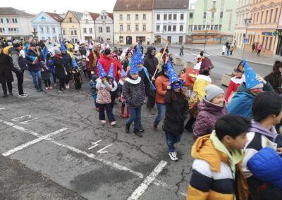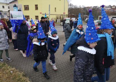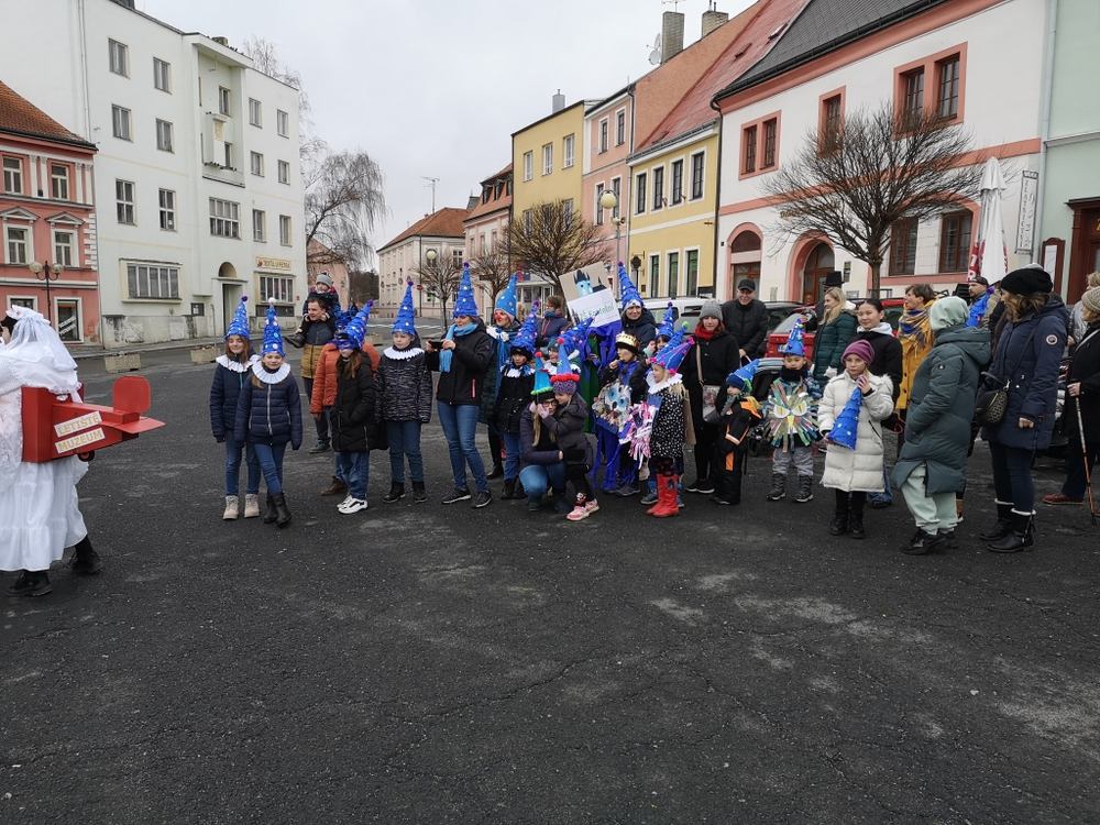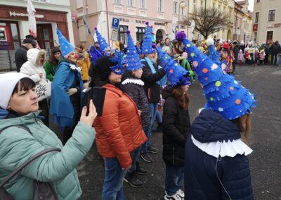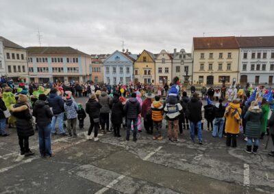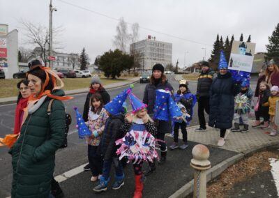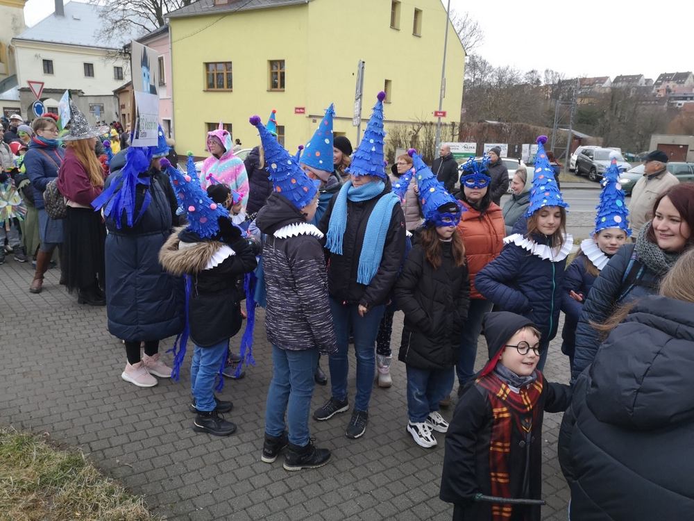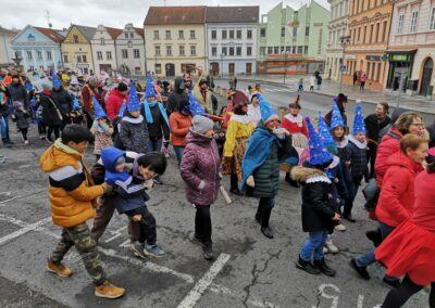 V souvislosti s projektem „Tachovské děti v barvách masopustu“ se hrdě zůčastnila i naše škola ve vybrané tmavě modré barvě. S celým průvodem jsme prošli centrum města, od muzea k náměstí a přes Husitskou až na zámek.