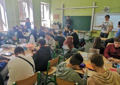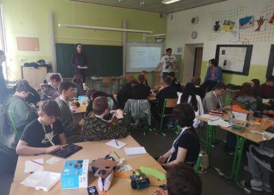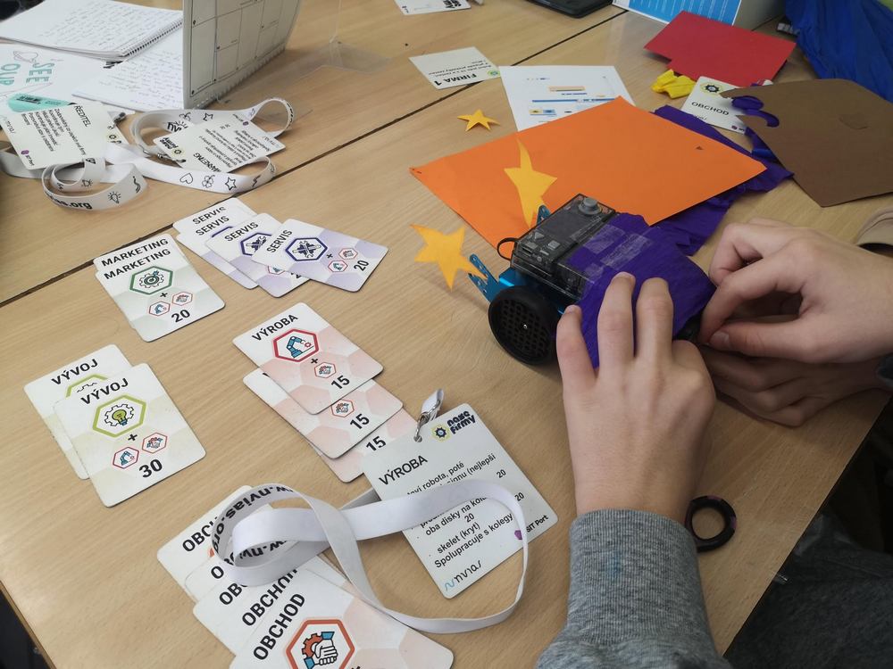 V rámci projektového dne si účastníci prakticky vyzkoušeli základní principy obchodu, vytvořili si investiční strategie, postavili robota dle vlastního plánu. Dále se učili informaticky přemýšlet a prezentovat svůj produkt ostatním firmám nejen mluvením, ale i copywritingem.