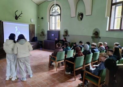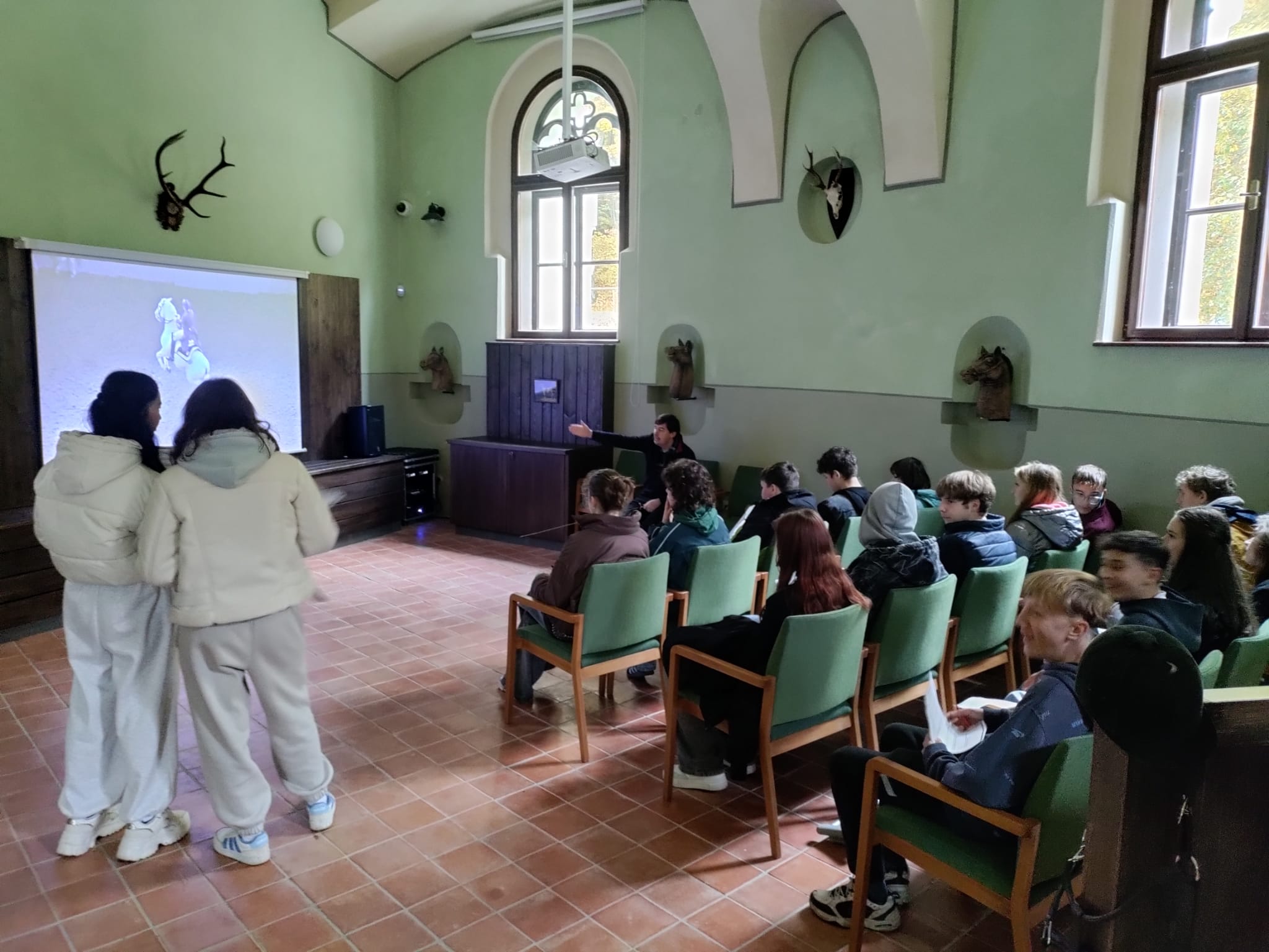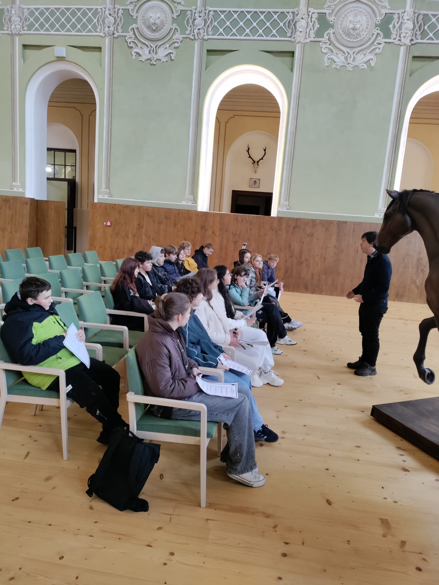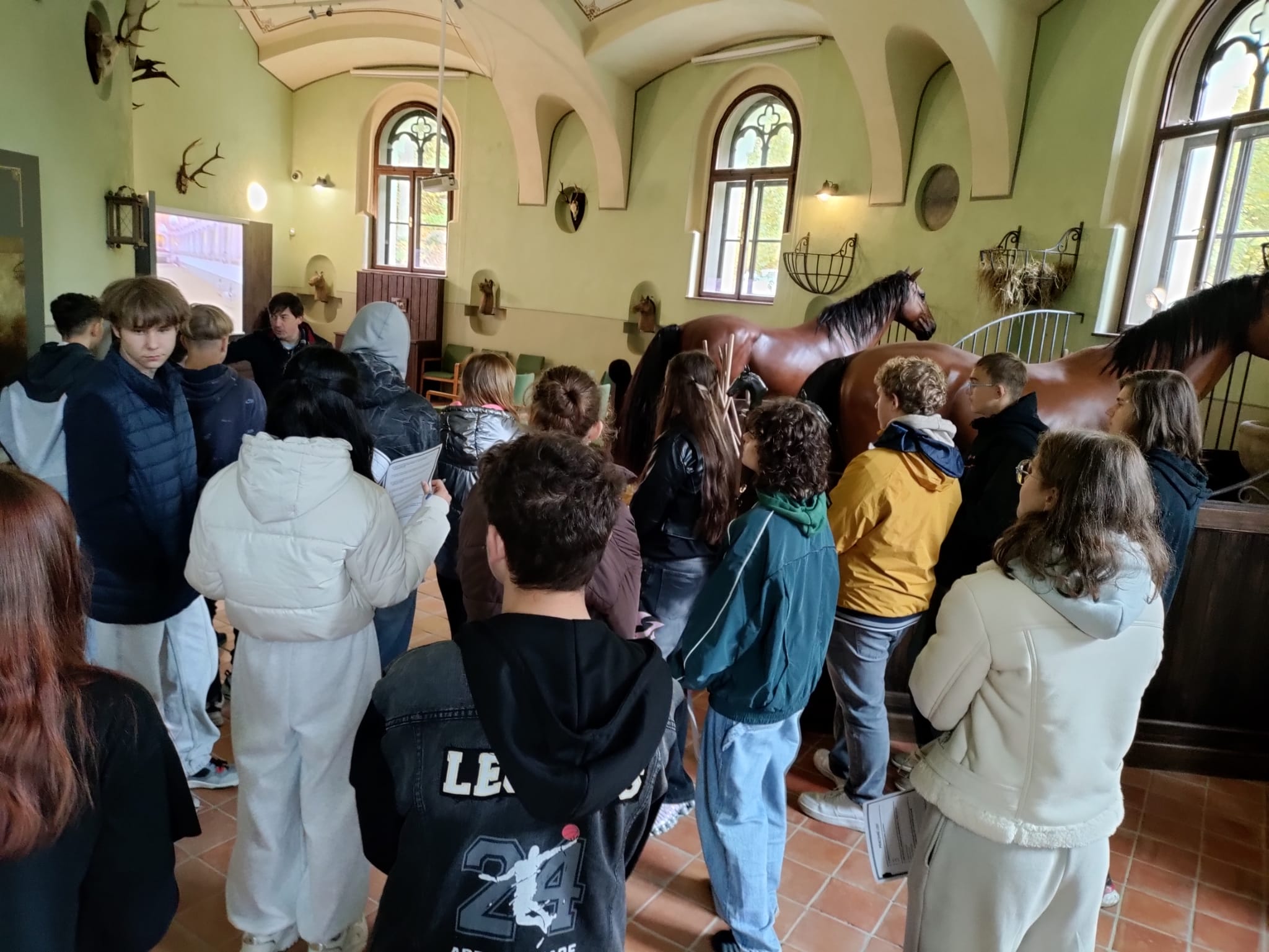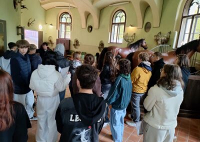 Žáci 9. ročníku v pátek 17. 10. 2025 v rámci výuky dějepisu navštívili prohlídkový okruh národní kulturní památky Jízdárny Světce. Kromě prohlídky hlavního sálu, ubytovacích místnosti, stájí nebo půdy si žáci mohli vyzkoušet i práci v kovárně či poznávání bylin