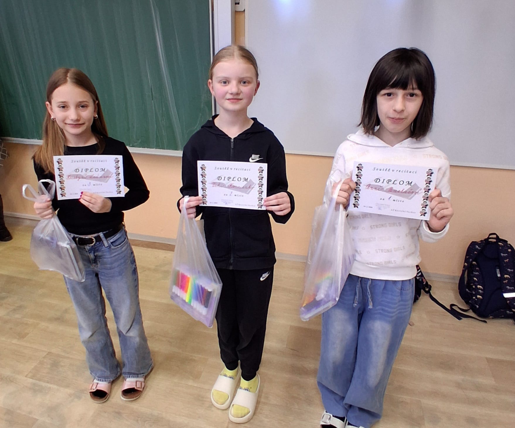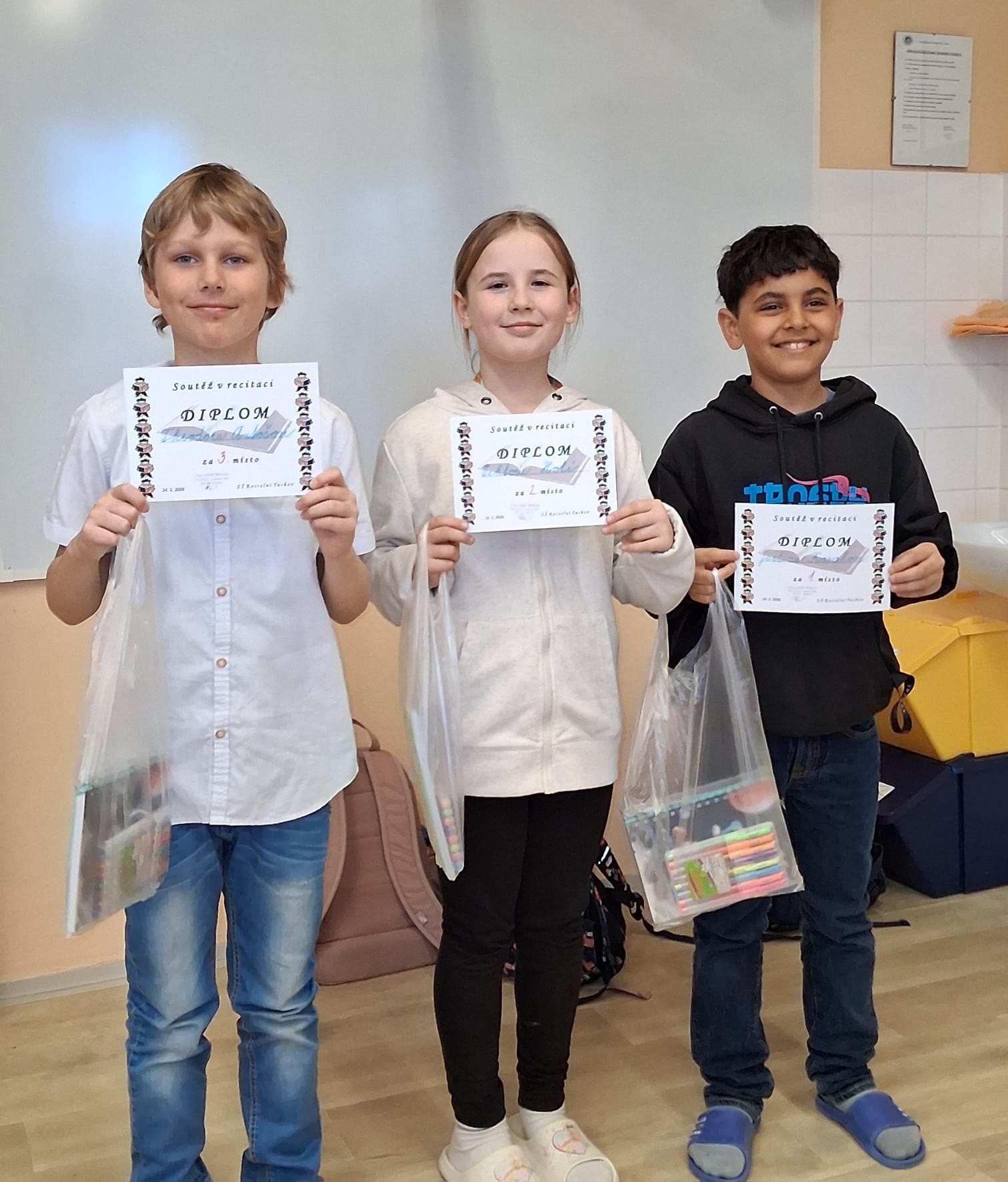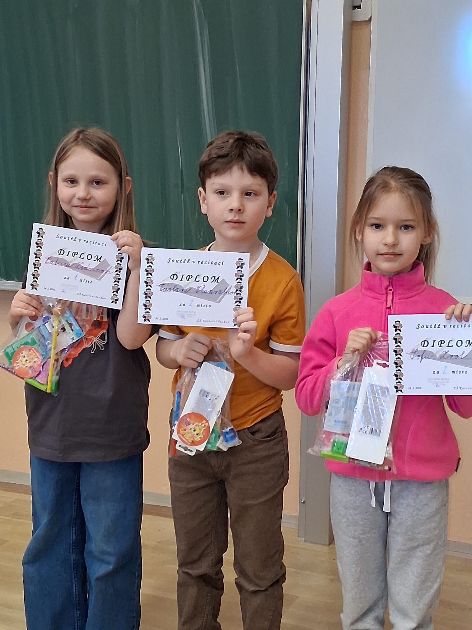 V úterý 24. 2. 2026 proběhlo školní kolo soutěže v recitaci. Z 12 soutěžících vybrala porota čtyři recitátory, kteří postoupili do okresního kola. Ve čtvrtek 12. 3. bude naši školu reprezentovat Viktorie Holá, Justin Karalo, Anna Machačová a Viktoria Rotari. Budeme držet palce.