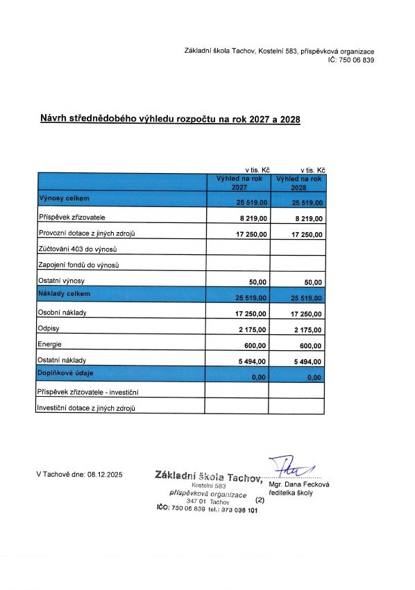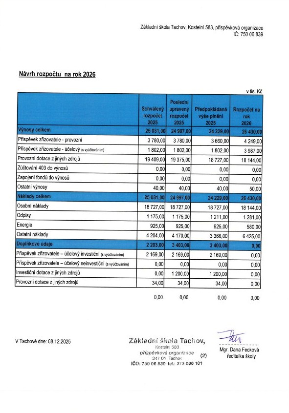 Návrh rozpočtu školy