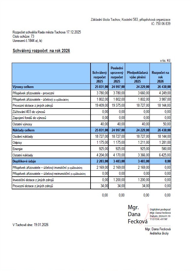 Schválený rozpočet